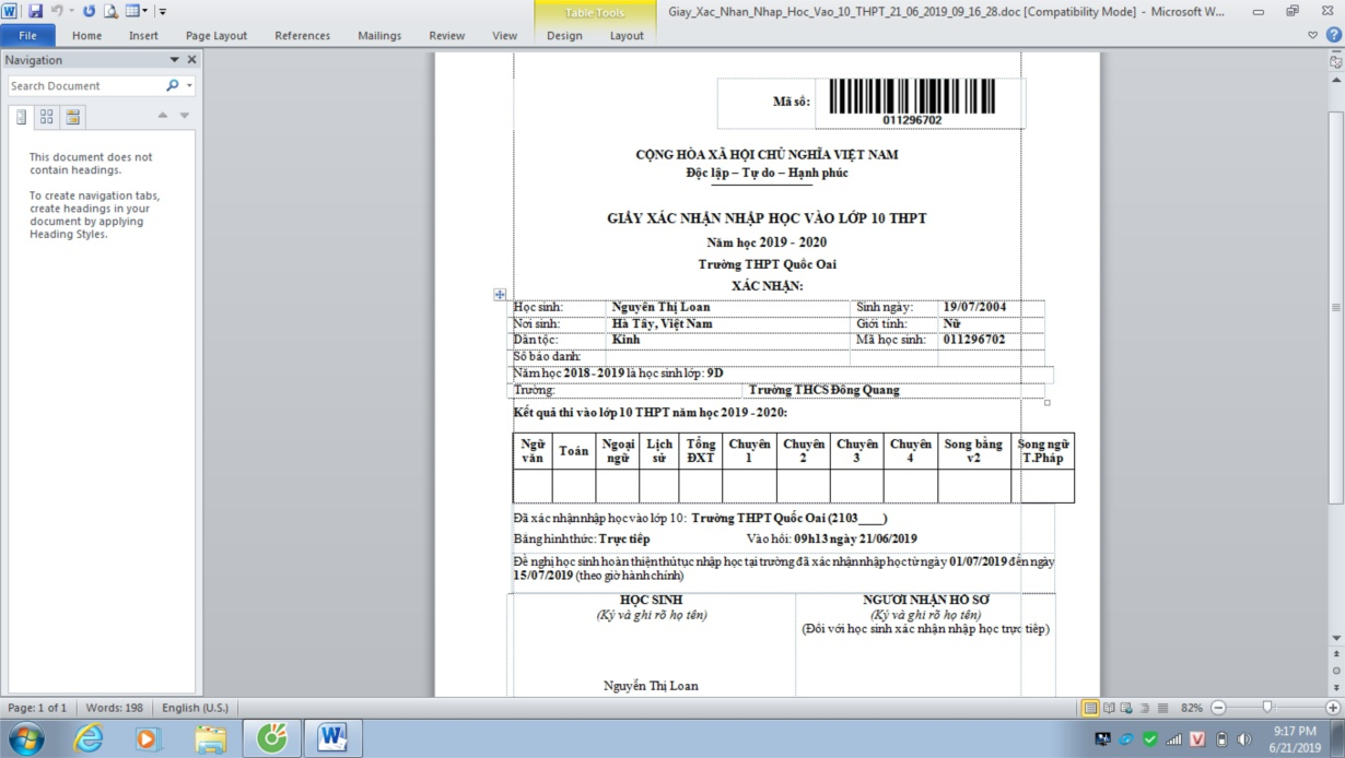Tính đến thời điểm hiện tại nhà trường đã nhận được 620/630 học sinh xác nhận nhập học tại trường, hiện còn một vài học sinh chưa xác nhận nhập học, đặc biệt có 02 học sinh tuyển thẳng nhưng chưa xác nhận, nếu hai học sinh trên trong ngày mai không xác nhận nhập học nhà trường sẽ không chịu trách nhiệm sau này.